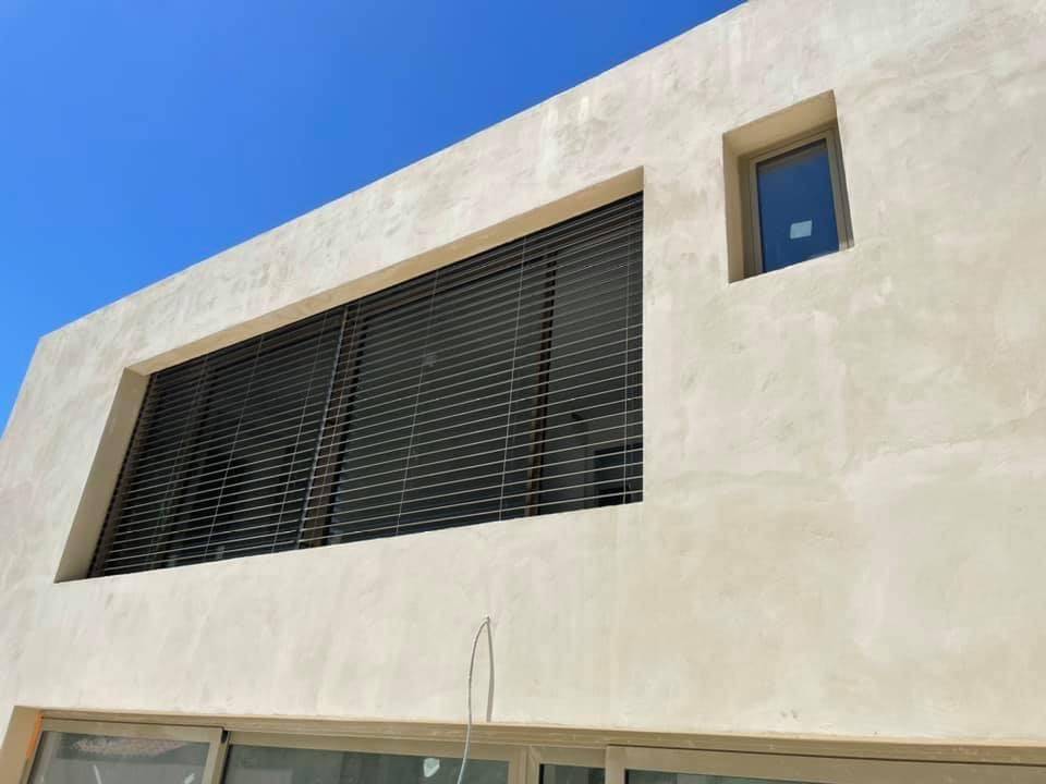 NAD a fourni et installé ces brise soleil à lames orientables en aluminium laqué.