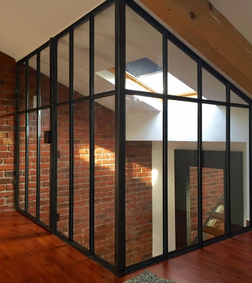 NAD a réalisé cette fermeture de cage d'escalier de type verrière en fer brut.
